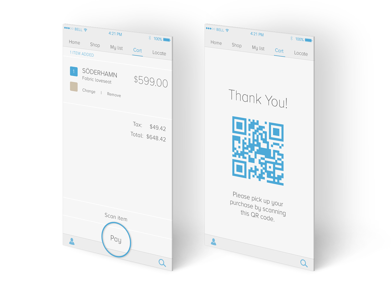 According to my survey, one of the biggest complaints about shopping at Ikea is long lines at the register. My solution will allow users to pay in the app and pick up their merchandise on their way out.